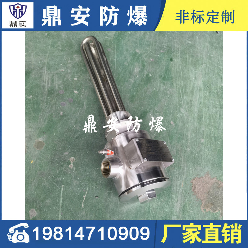 防爆法蘭式電加熱管按結構分大致可分為螺牙型和平板式法蘭型加熱器,常見的電壓:200V-220V-380V,功率按發(fā)熱根據發(fā)熱尺寸不同有:3KW-4.5KW-6KW-8KW-9KW-10KW-12KW-15KW-18KW-21KW等,通常由3-6-9支U型雙頭加熱管通過TIG氬弧焊接于法蘭組合而成。常作為鍋爐加熱器、槽體加熱器、模溫機加熱器等使用,廣泛運用于電子、塑膠、化工、環(huán)境工程的槽體-罐體-設備的加熱。螺牙型法蘭加熱器,常見的安裝螺牙(絲牙)尺寸有:1寸-1.5寸(M47*2.5)-2寸(M58*2.5)管螺牙;平板式法蘭型加熱器,常見的安裝法蘭標準有日標和國標兩種,大小有:DN32-DN40-DN50-DN65-DN80-DN100-DN125-DN150-DN200-DN250-DN350-DN400-DN450等,如日標JIS150 法蘭加熱器常見的壓力有6kg-10kg-16kg-25kg;