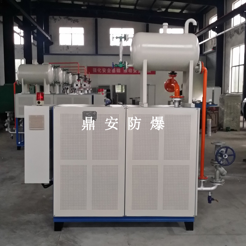 導(dǎo)熱油加熱機(jī)組(又稱電加熱導(dǎo)熱油爐)由防爆電加熱器、有機(jī)熱載體爐、換熱器(可配置)、控制柜,熱油泵、膨脹槽等組成一個(gè)整體的系統(tǒng),用戶只需要接入電源、介質(zhì)的進(jìn)出口管道法蘭及一些電氣接口即可使用。具有完備的運(yùn)行控制和安全監(jiān)測(cè)裝置,能實(shí)行自動(dòng)化控制。能在較低的運(yùn)行壓力下獲得較高的工作溫度。