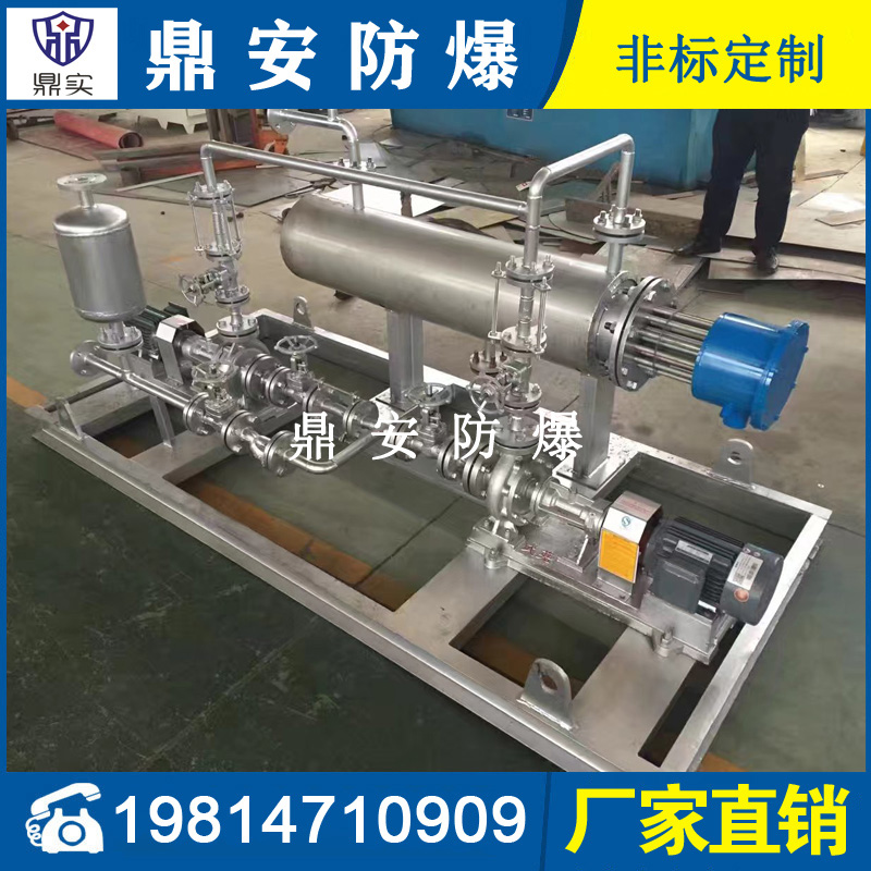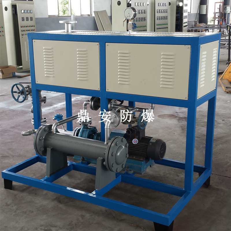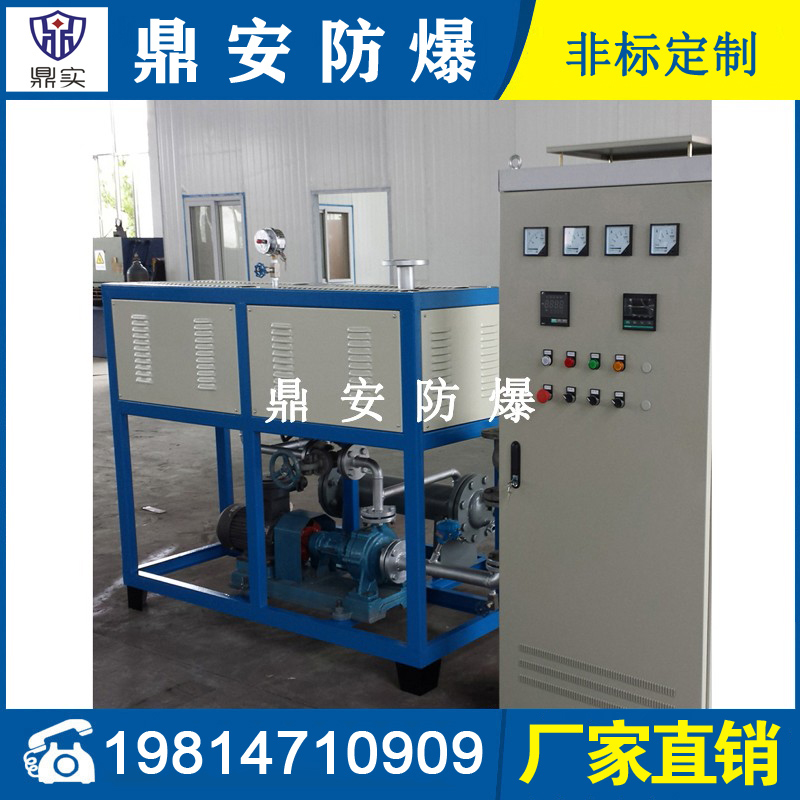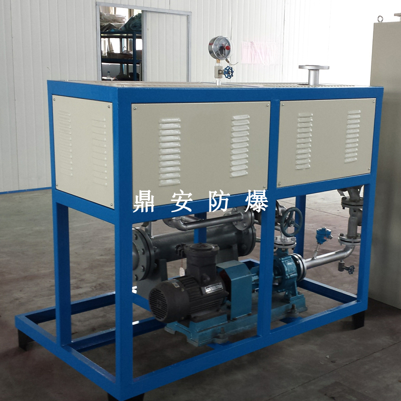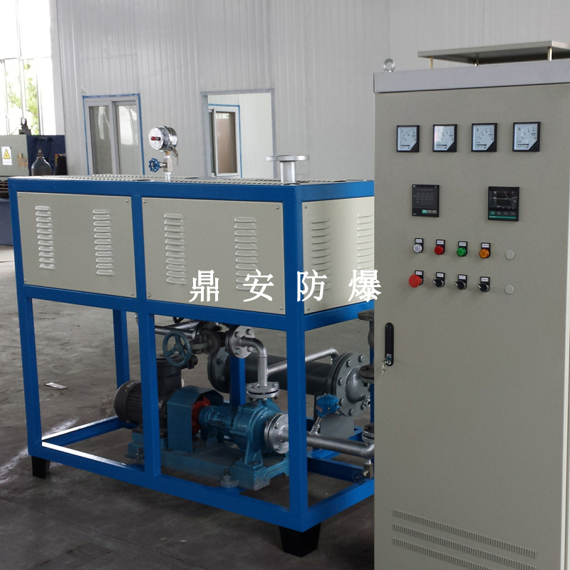 導(dǎo)熱油加熱機(jī)組(又稱電加熱導(dǎo)熱油爐)由防爆電加熱器、有機(jī)熱載體爐、換熱器(可配置)、控制柜,熱油泵、膨脹槽等組成一個(gè)整體的系統(tǒng),用戶只需要接入電源、介質(zhì)的進(jìn)出口管道法蘭及一些電氣接口即可使用。具有完備的運(yùn)行控制和安全監(jiān)測(cè)裝置,能實(shí)行自動(dòng)化控制。能在較低的運(yùn)行壓力下獲得較高的工作溫度。