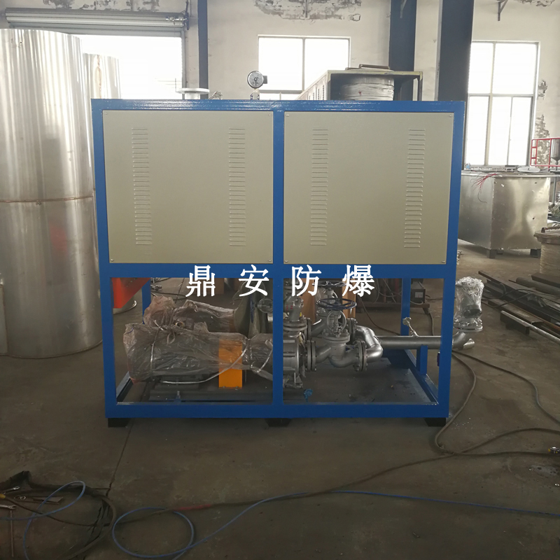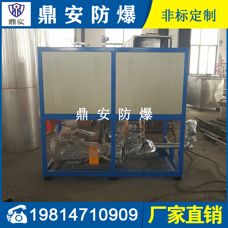 導熱油加熱機組(又稱電加熱導熱油爐)由防爆電加熱器、有機熱載體爐、換熱器(可配置)、控制柜,熱油泵、膨脹槽等組成一個整體的系統(tǒng),用戶只需要接入電源、介質(zhì)的進出口管道法蘭及一些電氣接口即可使用。具有完備的運行控制和安全監(jiān)測裝置,能實行自動化控制。能在較低的運行壓力下獲得較高的工作溫度。