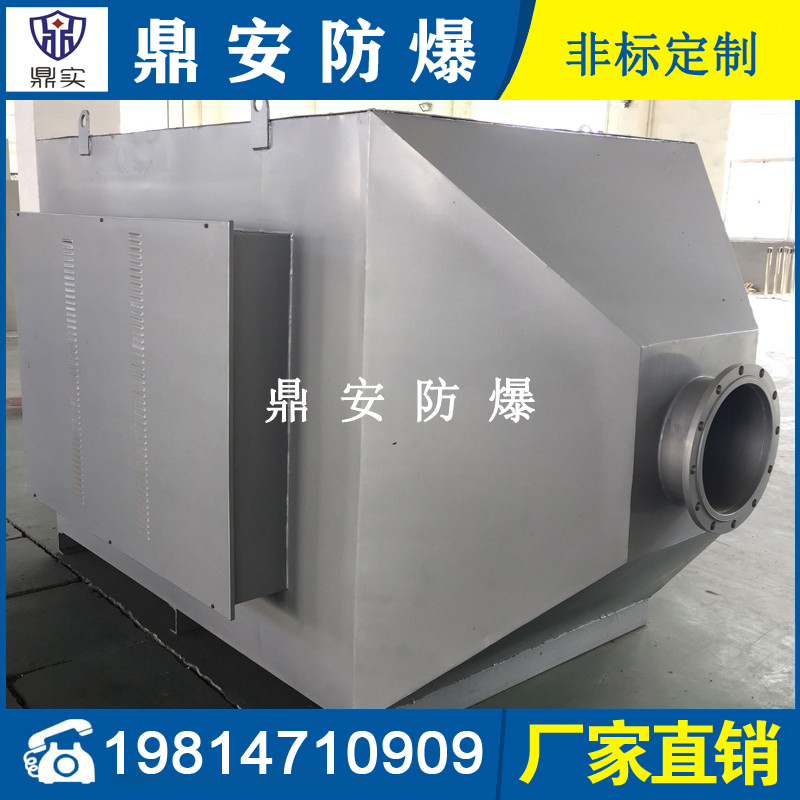 1、本體:該設(shè)備本體為方箱形。外殼及內(nèi)膽為不銹鋼板材,保溫層采用硅酸纖維鋁作填充保溫,并配有型鋼支座,結(jié)構(gòu)穩(wěn)定、牢固。冷風(fēng)進(jìn)口及熱風(fēng)出口為法蘭式結(jié)構(gòu)。