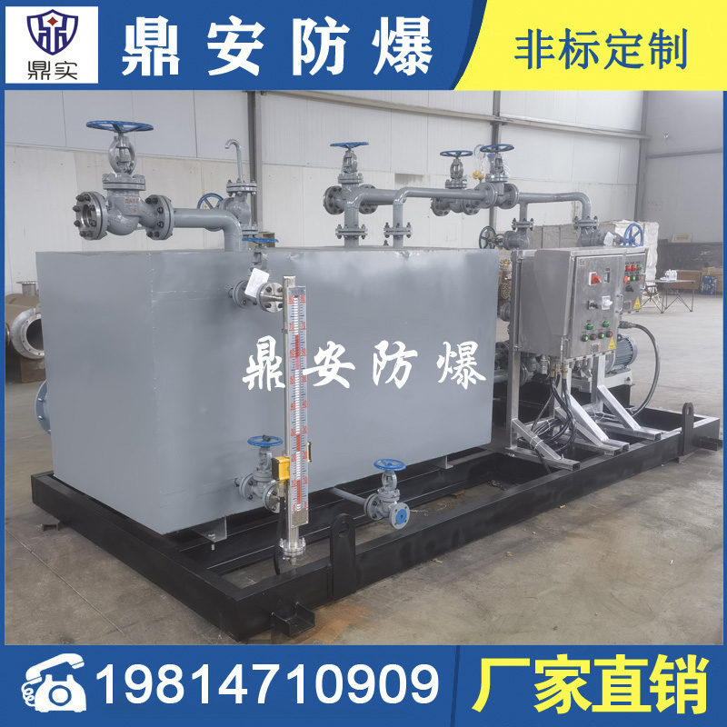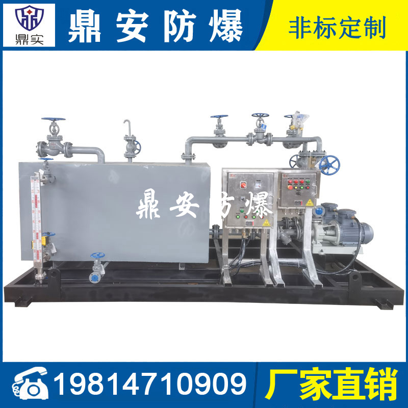 設(shè)備組成 氨水法氨蒸發(fā)器(DYBH-S)由 1、本體 2、噴嘴 3、防爆電加熱器 4、氣氨分離器 5,其他相關(guān)配件(閥門、溫度傳感器,氣動調(diào)節(jié)閥、溫度開關(guān)等)o6,DJK溫度控制柜,輔助設(shè)備等組成。容器上配有熱媒液位就地顯示,熱媒溫度遠傳等相關(guān)信號采集點。