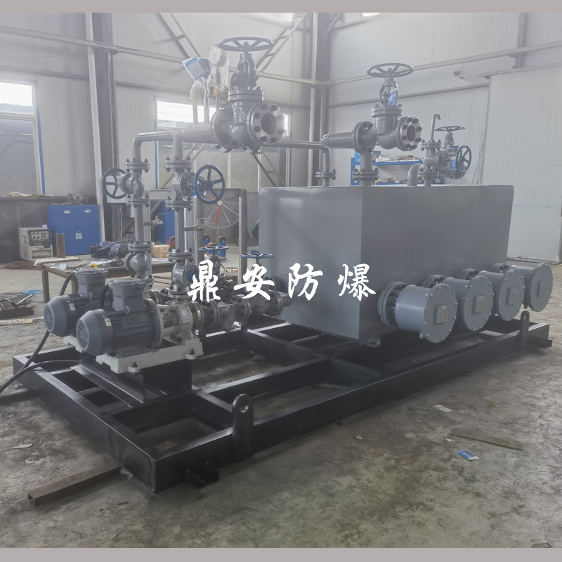 我公司生產(chǎn)的電加熱水浴式氨蒸發(fā)器(DYBH-T)的設(shè)計方案及制造工藝符合各項標準,滿足工藝要求,具有高溫下表面結(jié)構(gòu)緊湊,安裝維修方便,減少現(xiàn)場放空熱媒的麻煩,可操作性強,安全可靠,無噪音,對其他裝置無干擾,使用。升溫速度快壽命長。 電加熱水浴式液氨蒸發(fā)器是用于火力發(fā)電廠煙氣脫硝裝置系統(tǒng)中的氨氣量的供應。液氨通過不銹鋼換熱盤管進入電加熱水浴式蒸發(fā)器內(nèi),通過熱媒的換熱將液氨受熱蒸發(fā)到40C左右,形成氣氨并提供給脫硝系統(tǒng),熱媒的加熱源為可控的高效防爆電加熱器,防爆電加熱器通過容器內(nèi)溫度的反饋不斷的改變加熱器的功率,保證容器內(nèi)的溫度保持在設(shè)定的范圍內(nèi),不出現(xiàn)較大的溫度偏差,保證提供穩(wěn)定的熱源。